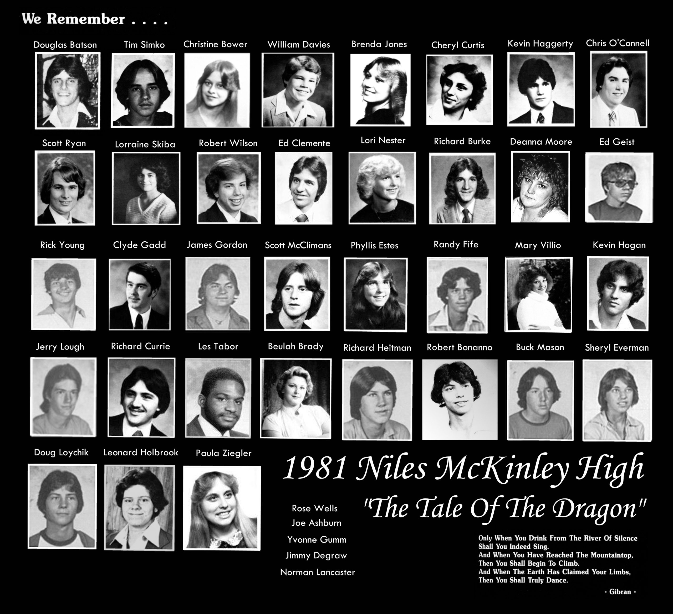 Niles McKinley Class of 1981: In Memoriam Gallery Original “In Memoriam” from Niles McKinley 1981 Yearbook